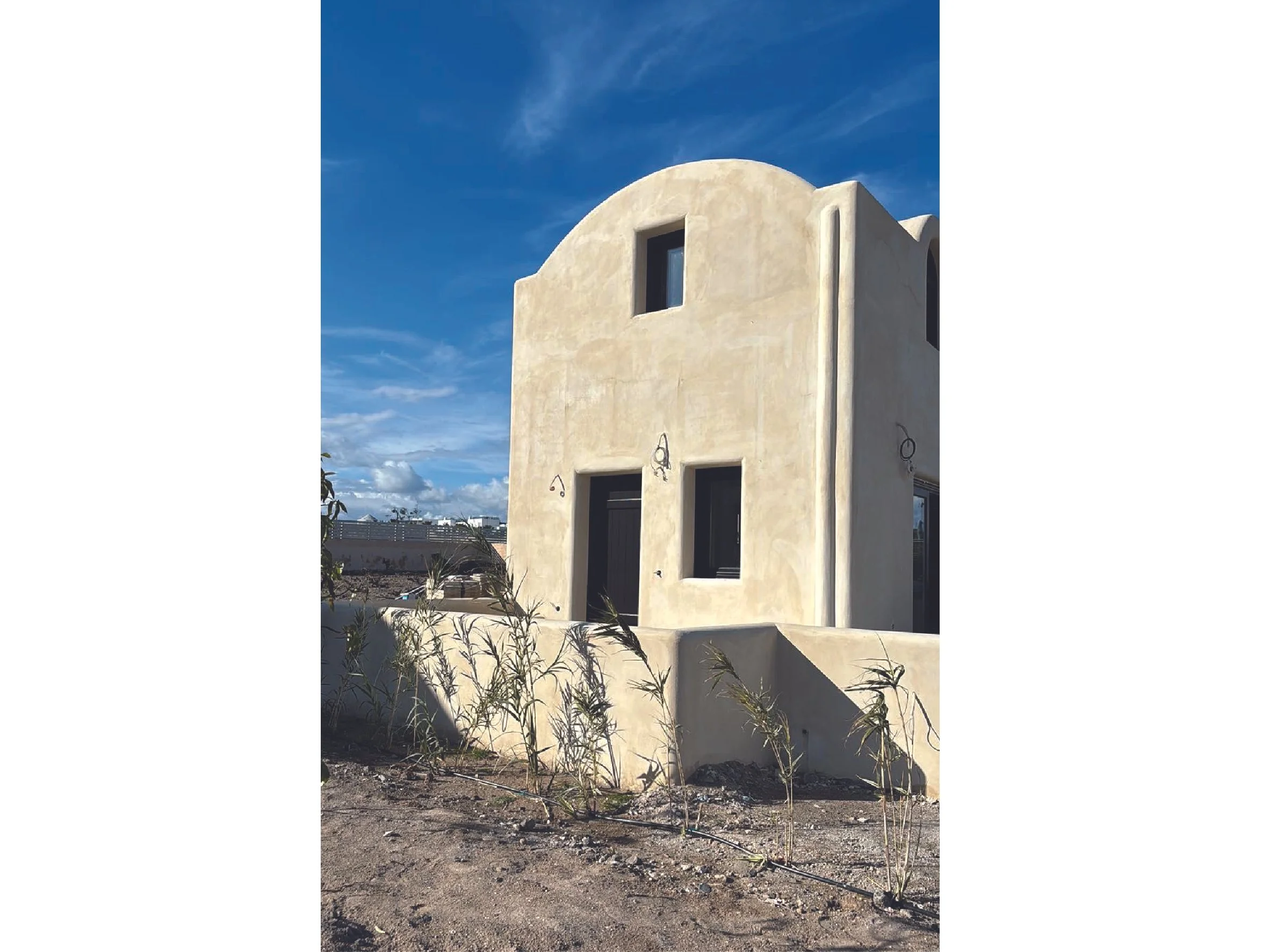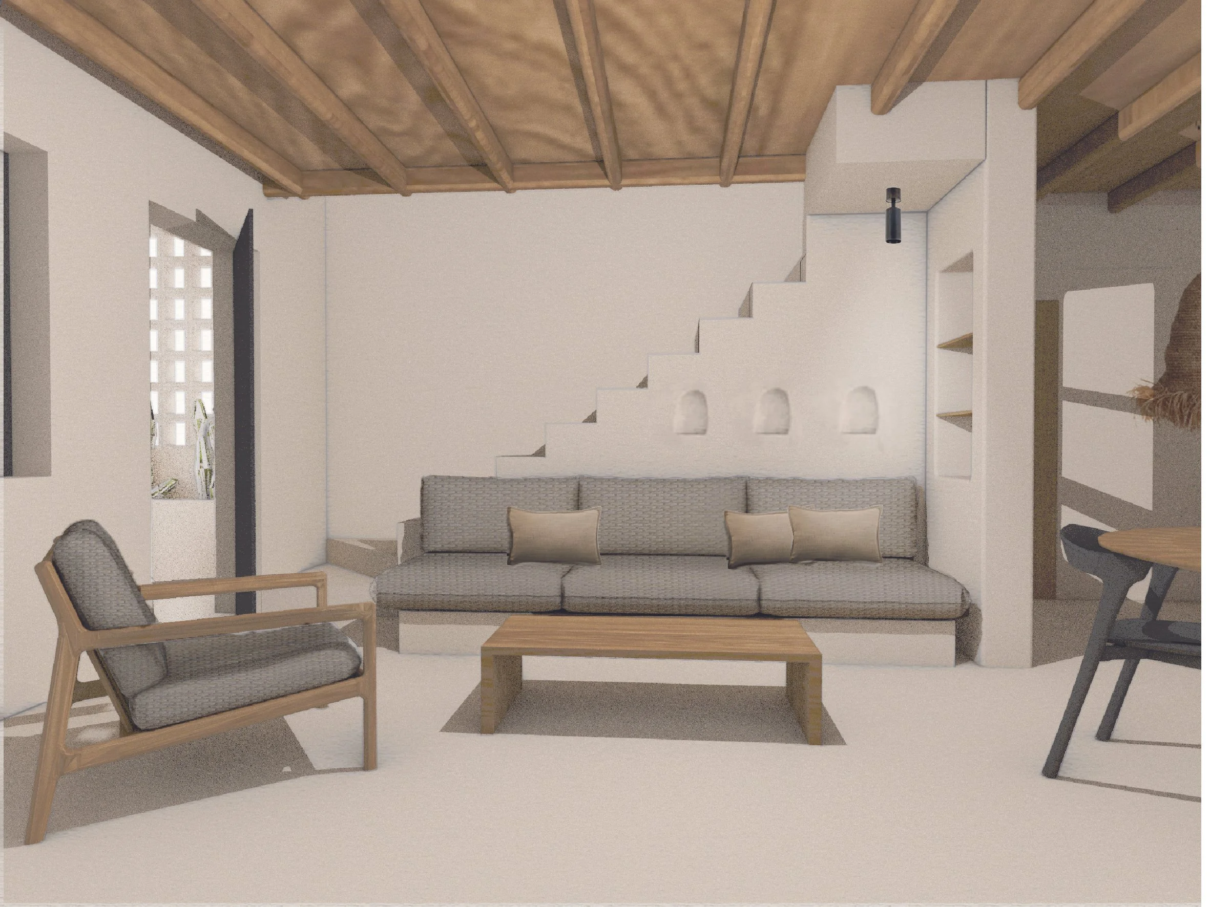 A guest house in Santorini inspired by Cycladic architecture. Simple forms, natural materials, and soft tones create a calm atmosphere that connects the interior with the island landscape.